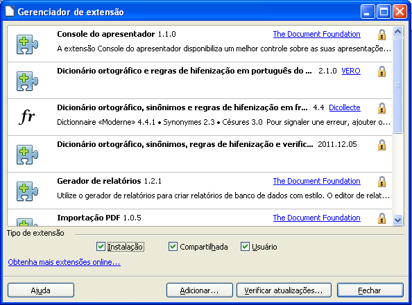 Impressum (Informação legal) | Datenschutzerklärung (Política de privacidade) | Statutes (non-binding English translation) - Satzung (binding German version) | Copyright information: Unless otherwise specified, all text and images on this website are licensed under the Creative Commons Attribution-Share Alike 3.0 License. This does not include the source code of LibreOffice, which is licensed under the Mozilla Public License v2.0. “LibreOffice” and “The Document Foundation” are registered trademarks of their corresponding registered owners or are in actual use as trademarks in one or more countries. Their respective logos and icons are also subject to international copyright laws. Use thereof is explained in our trademark policy. LibreOffice was based on OpenOffice.org.